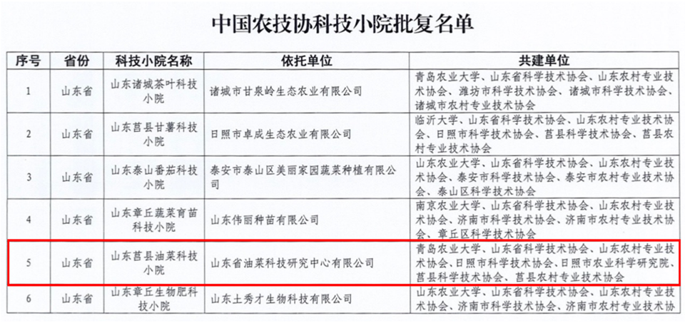 近日,中国农村专业技术协会印发《关于同意设立“中国农村专业技术协会科技小院”的批复》(农技协发字[2026]9号),正式审核通过“山东莒县油菜科技小院”成立。该国家级平台由72779太阳集团油菜团队与莒县相关单位共同参与建设,为山东因地制宜发展油菜产业提供了新的科技支撑平台。