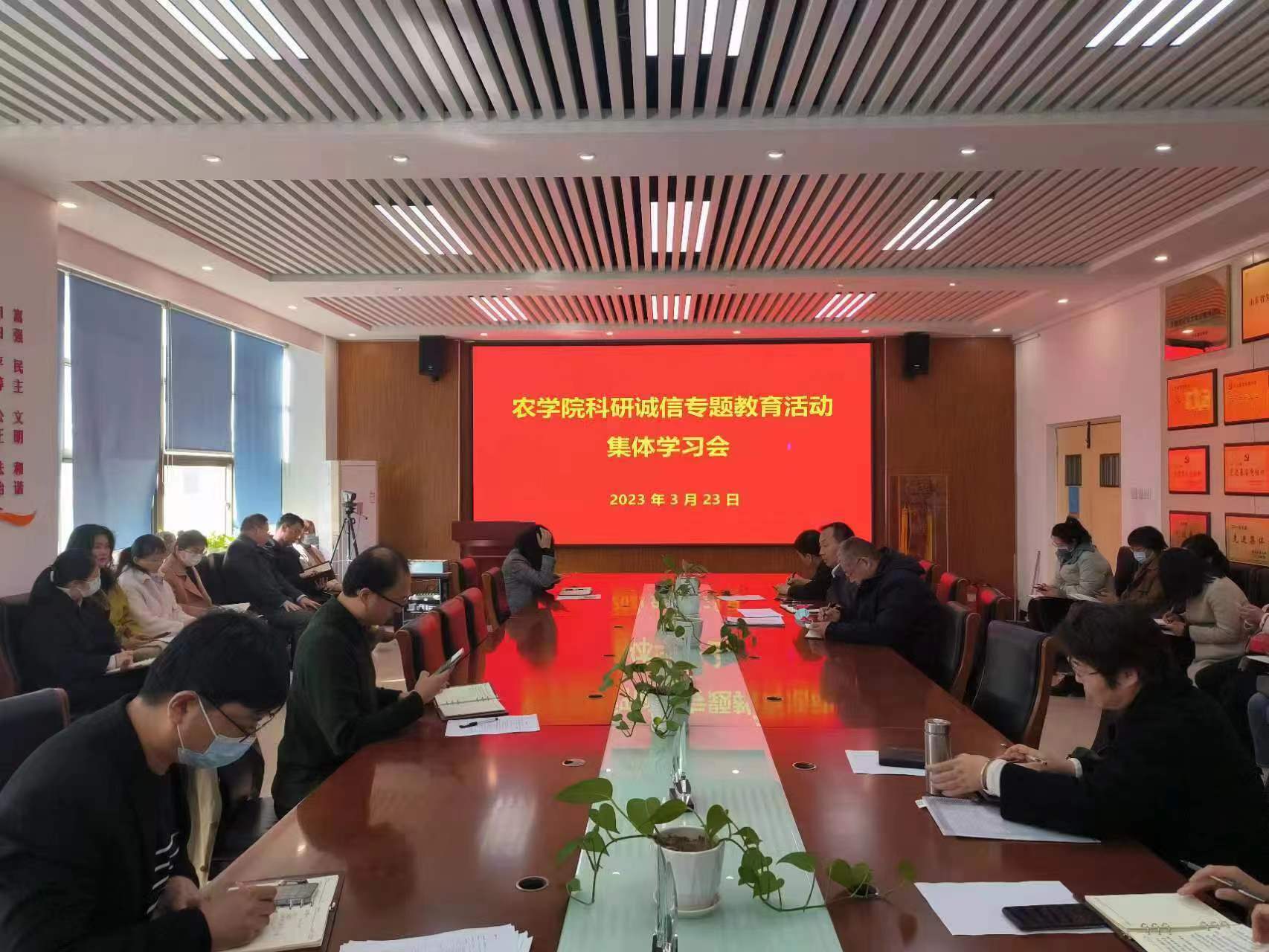 为进一步加强学院科研诚信建设,树立学术规范理念,3月23日,72779太阳集团在生物楼举行科研诚信专题教育活动集体学习会,学院领导班子成员和教师参加,会议由副院长赵长星主持。