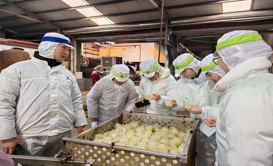实践团聚焦农产品加工转化、产业融合、农技落地应用、农产品市场对接开展涉农企业研学。在百贝康食品有限公司,实践团走进生产车间观摩休闲食品生产线,请教技术骨干“种植+加工+销售”一体化运营细节,探寻初级农产品增值路径。在银香伟业集团,实践团先后深入有机蔬菜种植基地查看种植实况、乳品加工车间了解生产流程,理清“种养+有机”生态农业融合路径。在商都恒昌有限公司,实践团全程跟踪肉类农产品加工配送全流程,记录技术要点,探究先进农技在农产品品质保障中的落地方法。在紫山罐头食品有限公司,实践团了解罐头生产工艺,调研深加工农产品市场定位及消费需求,梳理产销精准对接思路。