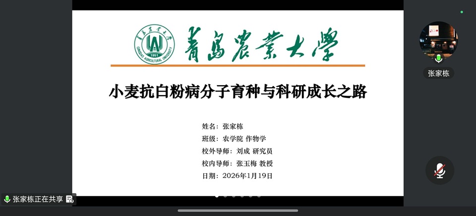 1月19日上午,第二场沙龙聚焦科研能力训练展开。博士研究生张家栋结合自身经历,作《小麦抗白粉病分子育种与科研成长之路》专题报告;硕士研究生杨凡晶以《农学实验设计与数据分析方法》为题进行了系统阐述;本科生季晓慧围绕科技文献综述写作与数据方法开展交流。内容覆盖科研全流程,为学生参与科创项目与实验室训练打下基础。