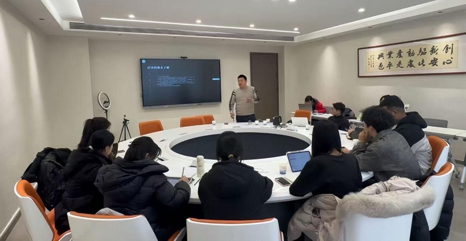 团队聚焦抖音电商直播,公司电商部直播运营负责人牟智刚详细讲解了爆款视频的核心逻辑,拆解爆款短视频的创作思路与实操要点,让实践团成员清晰掌握短视频引流吸引观众的底层逻辑。电商部孙琛围绕“农产品短视频制作全流程”,从拍摄剪辑技巧到内容抓客,进行细致入微的理论指导。